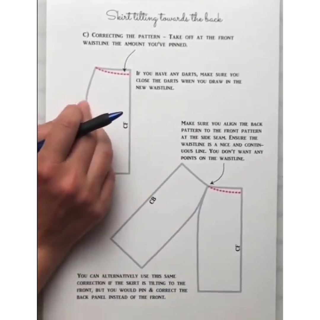 Correcciones para patrones de pantalones y faldas – Entallar un vientre y/o un trasero amplio