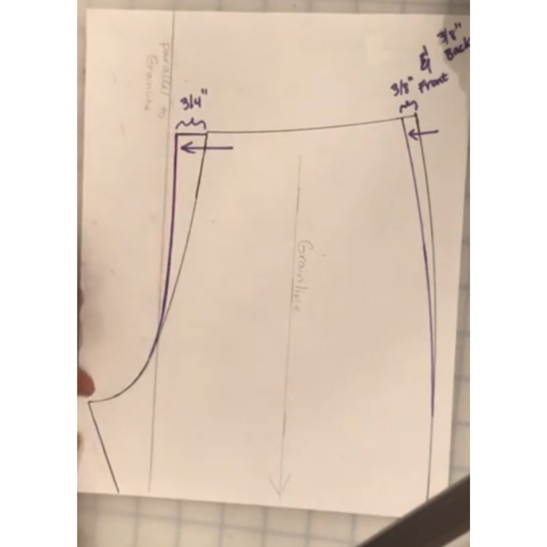 Corregir las arrugas del tiro delantero en patrones de pantalones – Paso 1: Enderezar el tiro delantero