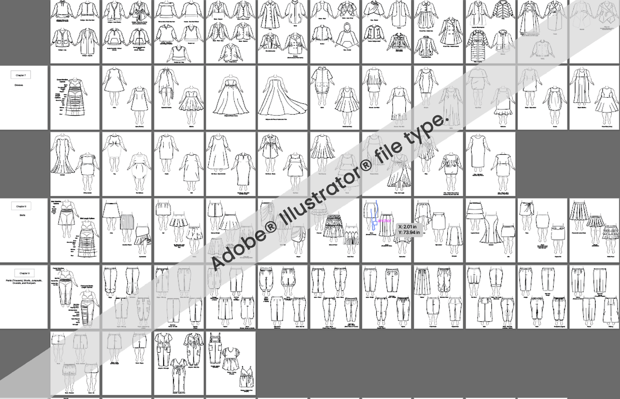 A Library of Silhouettes & Style Details for Drawing Flat Fashion Sketches.