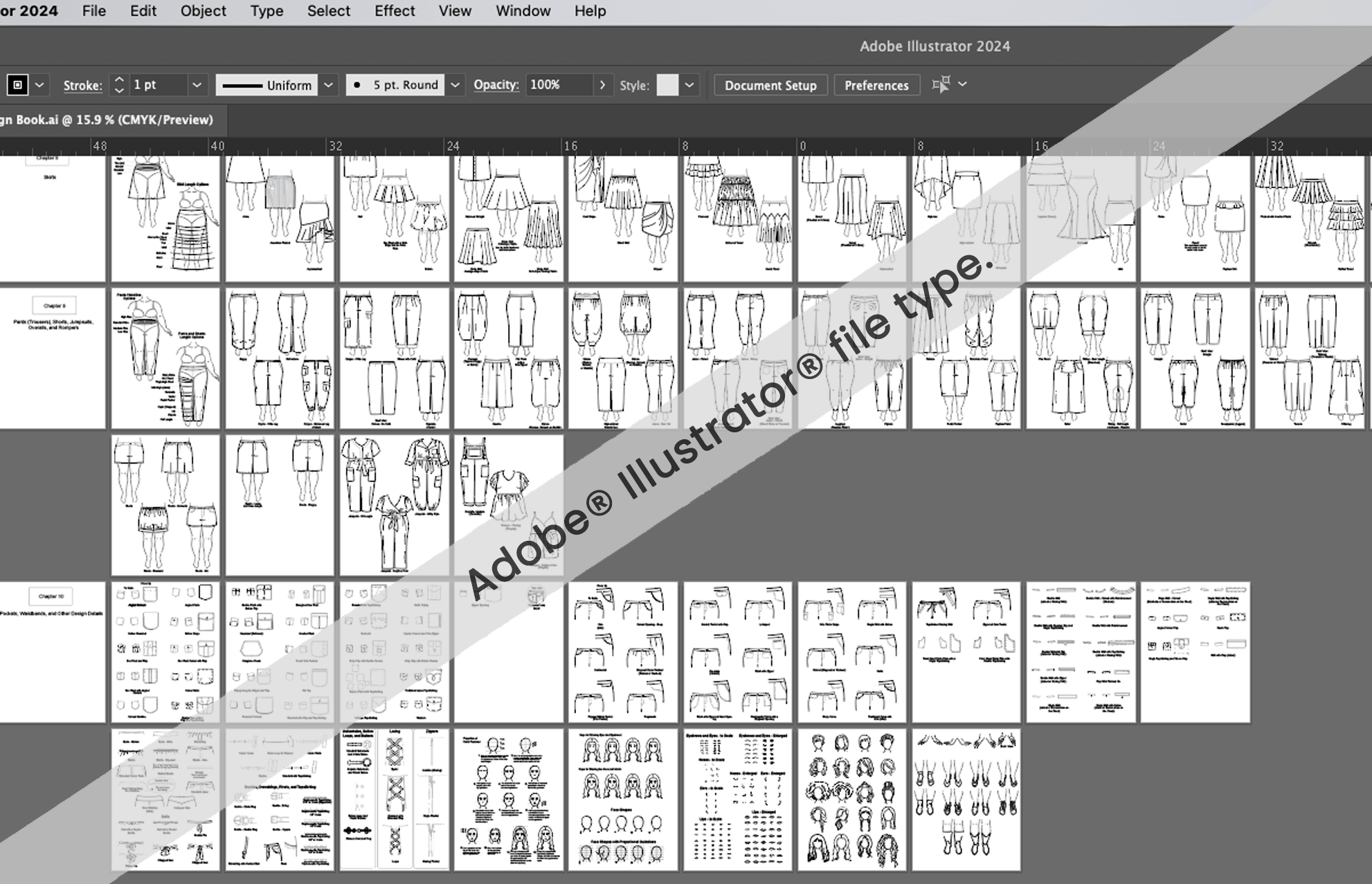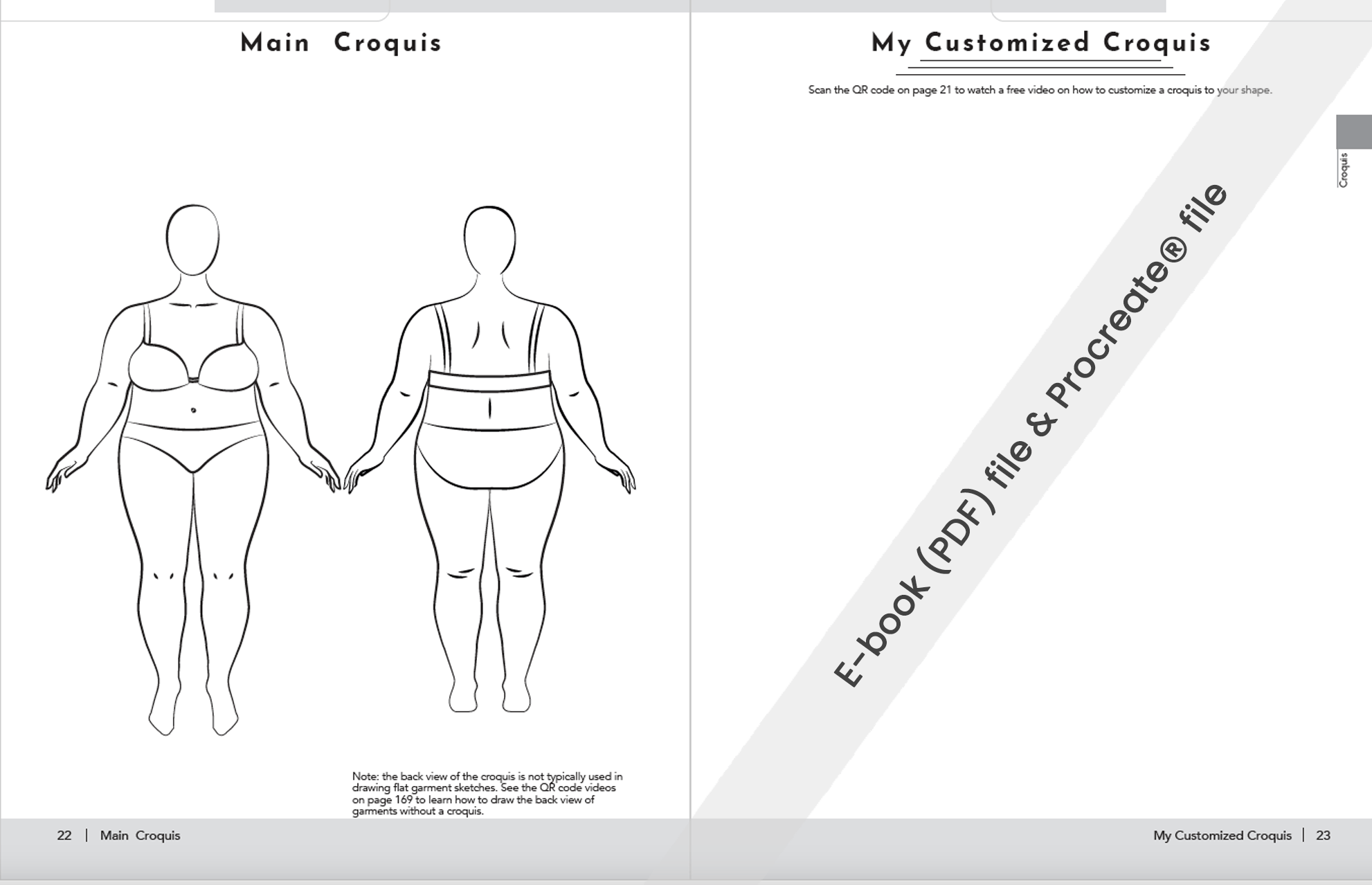 The digital book offers a library of sketches for curvy or plus-size women. This bundle pack includes the Adobe® Illustrator®, Procreate®, and PDF versions of the book. It will guide you through the process with free step-by-step videos (through QR codes within the PDF version). More than 40 free videos linked through the book teach you how to design, sketch, and render your fashion sketches.