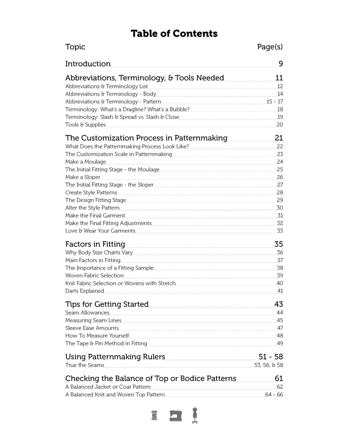 This is an ebook (used digitally on your computer or tablet, not for Kindle). You will learn about terminology, abbreviations, pattern tools, and patternmaking supplies. The book shows how to use a hip curve, a French curve, and a clear ruler for patternmaking.